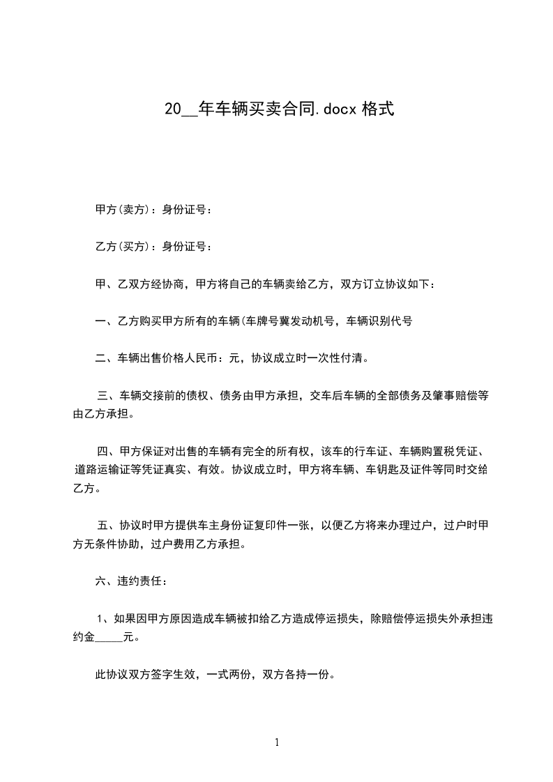 一、乙方购买甲方所有的车辆(车牌号冀发动机号,车辆识别代号