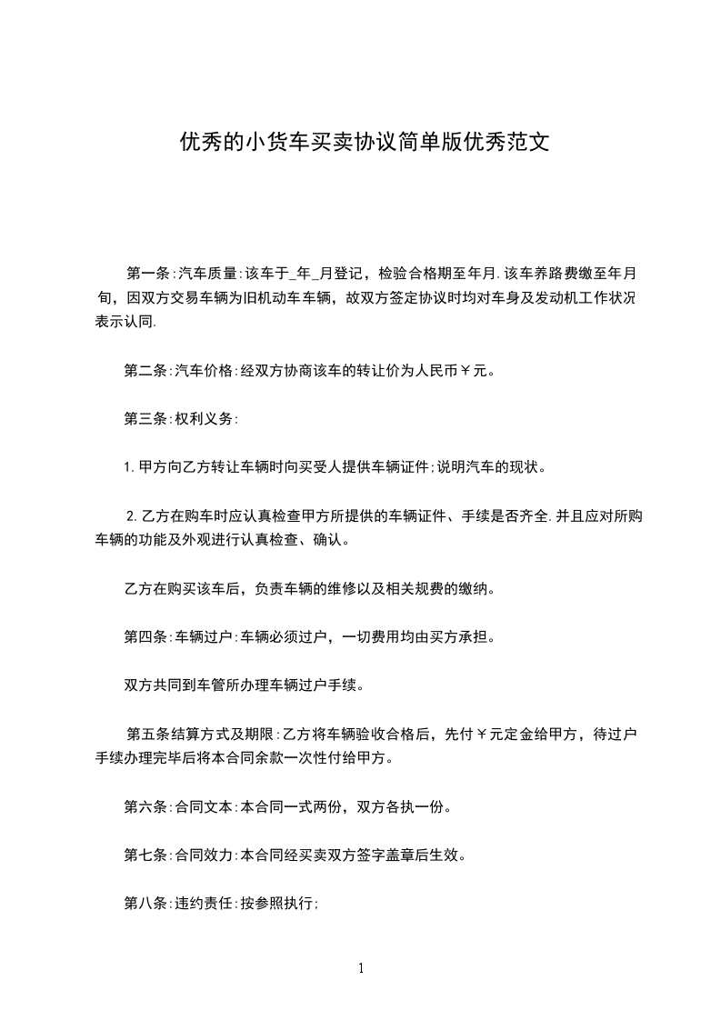 第七条:乙方应保证交付前该车的维护正常,手续完整。