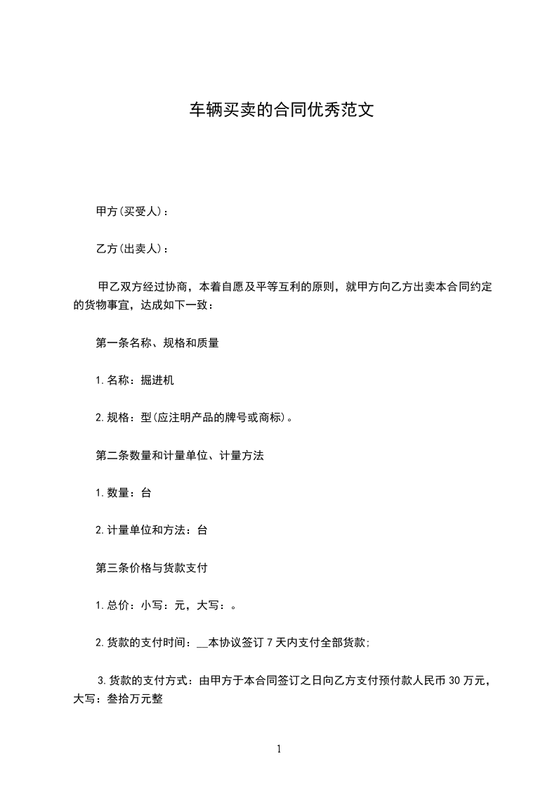 第一条:甲方购买乙方所有的机动车一辆: