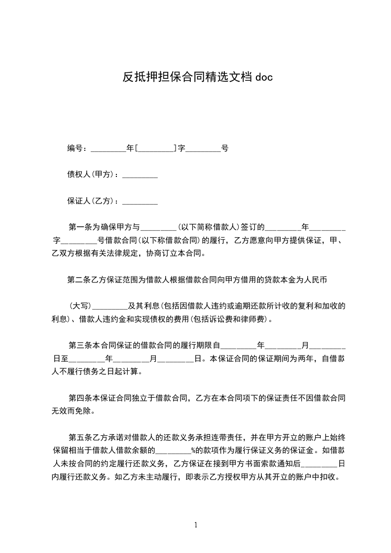 第一条为确保甲方与_________(以下简称借款人)签订的_________年_________字_________号借款合同(以下称借款合同)的履行,乙方愿意向甲方提供保证,甲、乙双方根据有关法律规定,协商订立本合同。