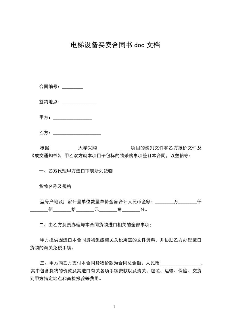 三、甲方向乙方支付本合同货物价款为合同总金额:人民币__________________,其中包含货物的价款及其进口有关各项手续费款以及清关、包装、运输、保险、交货到甲方指定地点和商检报验等费用。