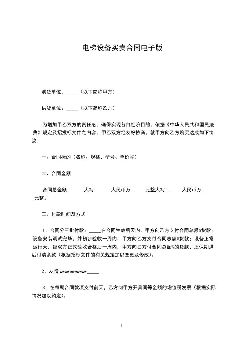 1.首期货款:本合同签字生效之日起在甲方收到乙方通知和收款凭证资料的10个工作日内,甲方首期按合同总金额的百分之九十五价款¥______元付给乙方;