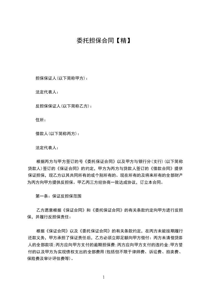 受托人(乙方):法定代表人主要负责人:职务:注册地址:____编码:电话:传真:甲方因向申请□融资授信□人民币贷款□银行承兑汇票(大写),(小写)____,特委托乙方为其融资债务提供(大写)______,(小写)连带责任保证担保,(大小写不一致时以大写为准)。乙方经审评,同意为甲方就上述融资债务提供担保。融资金额、期限、利率、用途以甲方与____银行签定的□授信协议□借款合同□银行承兑协议为准。担保方式、期间和范围以乙方与____银行协商后签定的担保合同或向____银行出具的不可撤销担保书为准。甲方和乙方遵循自愿、公平、平等和诚实信用等民事法律基本原则对双方的权利、义务和违约责任进行磋商。经双方意思表示一致,特签定本合同。