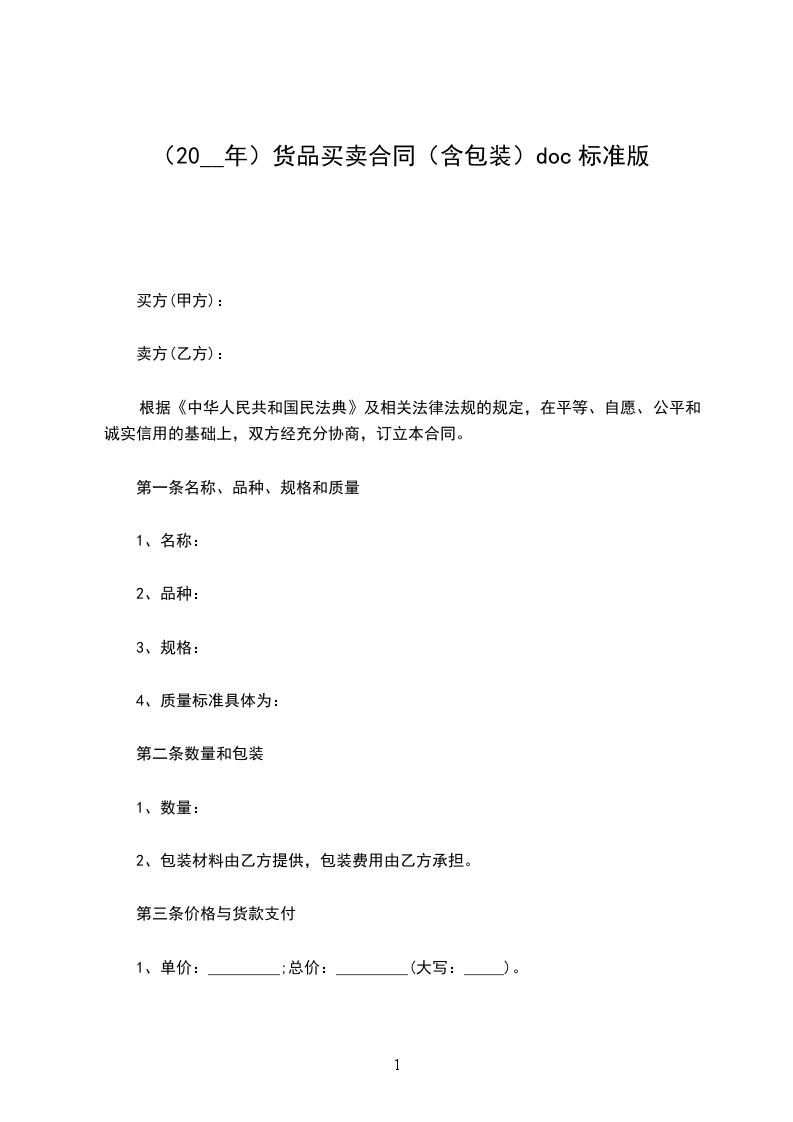 一、品名、计量单位、数量: