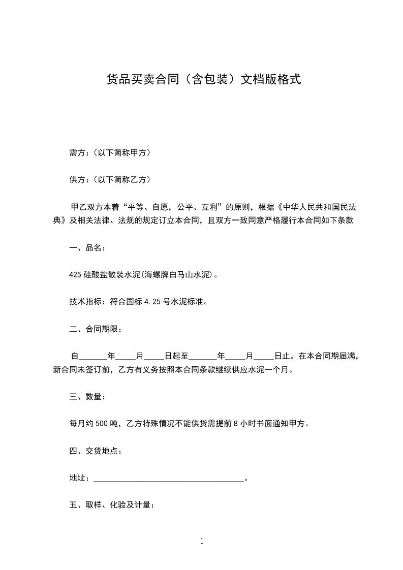 八、货款结算方式:乙方验收后一周内支付现金或汇款。
