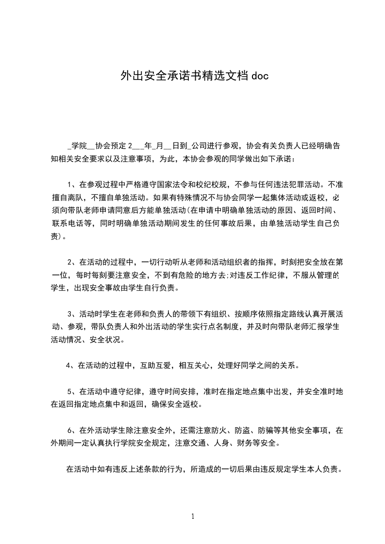 为了认真贯彻落实“安全第一,预防为主”的原则,切实做好涉及轻纺公司员工人身安全的各项工作,杜绝员工外出旅游期间一切安全事故的发生,确保员工旅游期间安全、愉快,特制定旅游期间安全责任如下,请大家按要求做好监护和自我保护工作。