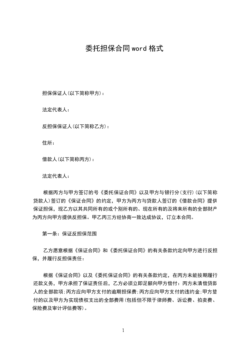 根据丙方与甲方签订的号《委托保证合同》以及甲方与银行分(支行)(以下简称贷款人)签订的《保证合同》的约定,甲方为丙方与贷款人签订的《借款合同》提供保证担保,现乙方以其共同所有的或个别所有的、现在所有的及将来所有的全部财产为丙方向甲方提供反担保。甲乙丙三方经协商一致达成协议,订立本合同。