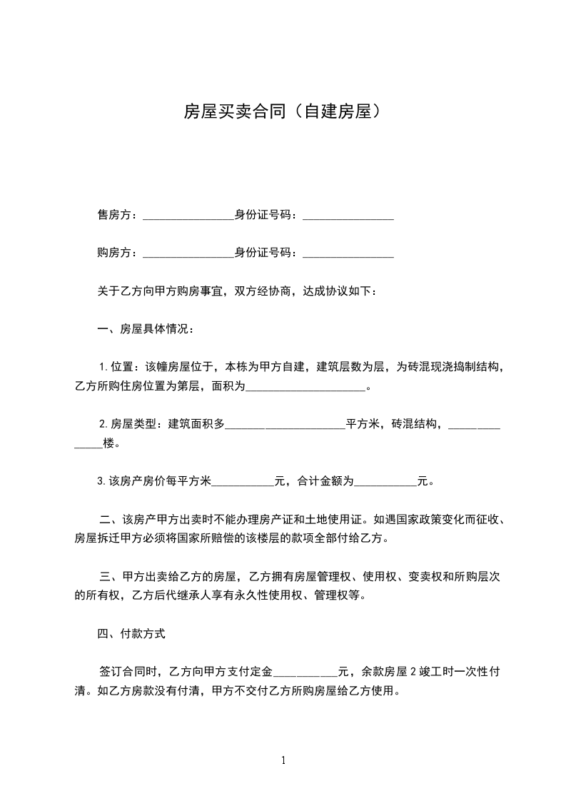 房屋买卖合同协议书格式如下: