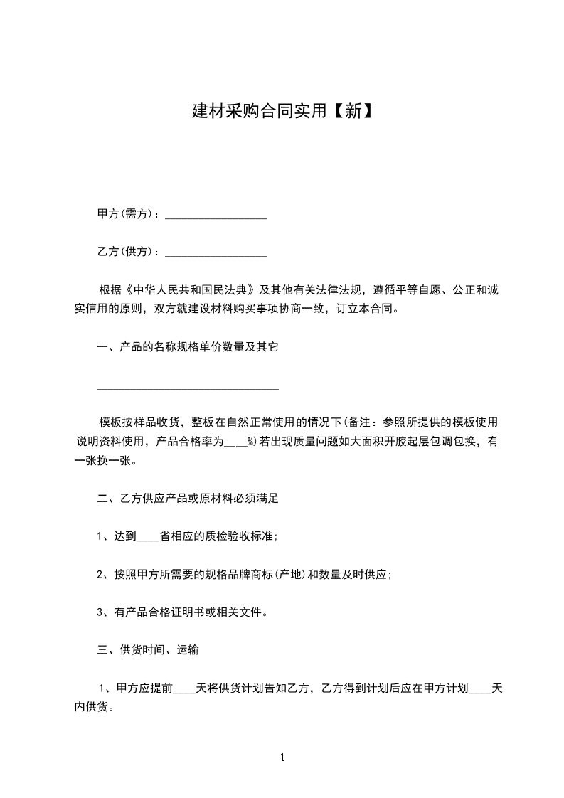 根据《中华人民共和国民法典》及其他有关法律法规,遵循平等自愿、公正和诚实信用的原则,双方就建设材料购买事项协商一致,订立本合同。