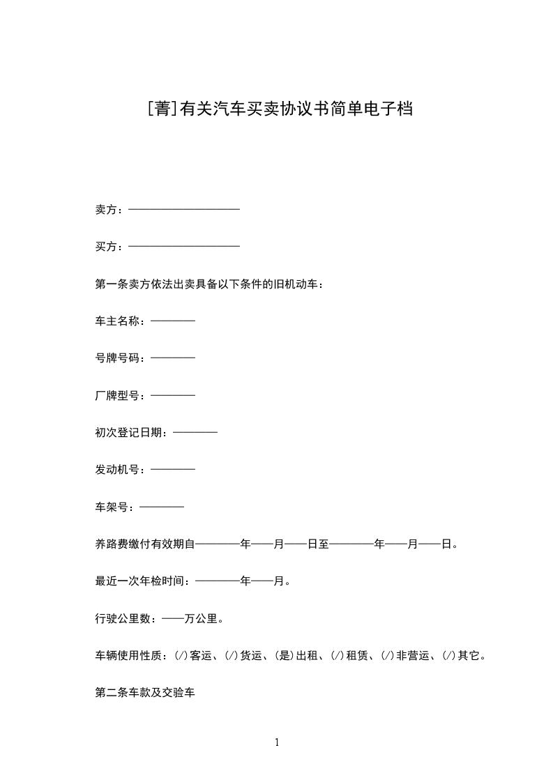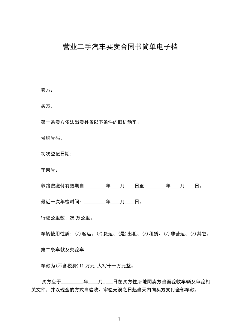 一、交易车辆基本情况:牌照____________;品牌型号________________;车辆类型:________________;发动机号:____________;车架号:_______________;车辆登记日期_________________。。