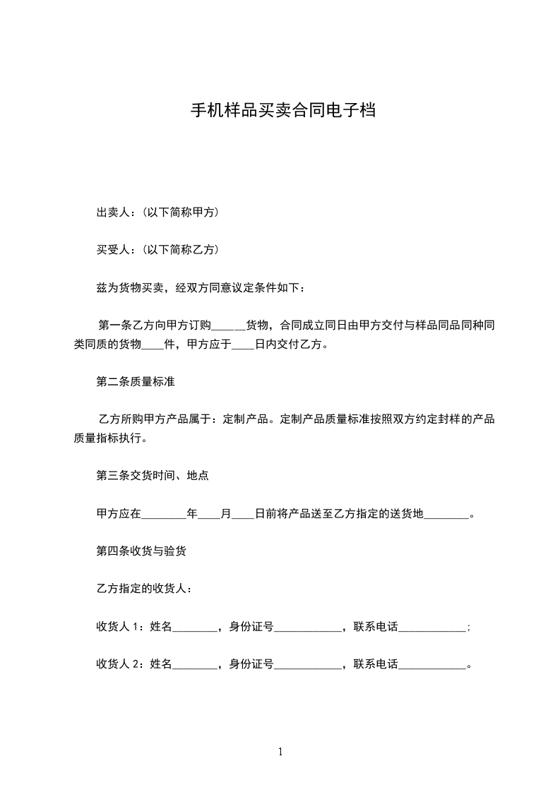 第一条乙方向甲方订购______货物,合同成立同日由甲方交付与样品同品同种同类同质的货物____件,甲方应于____日内交付乙方。
