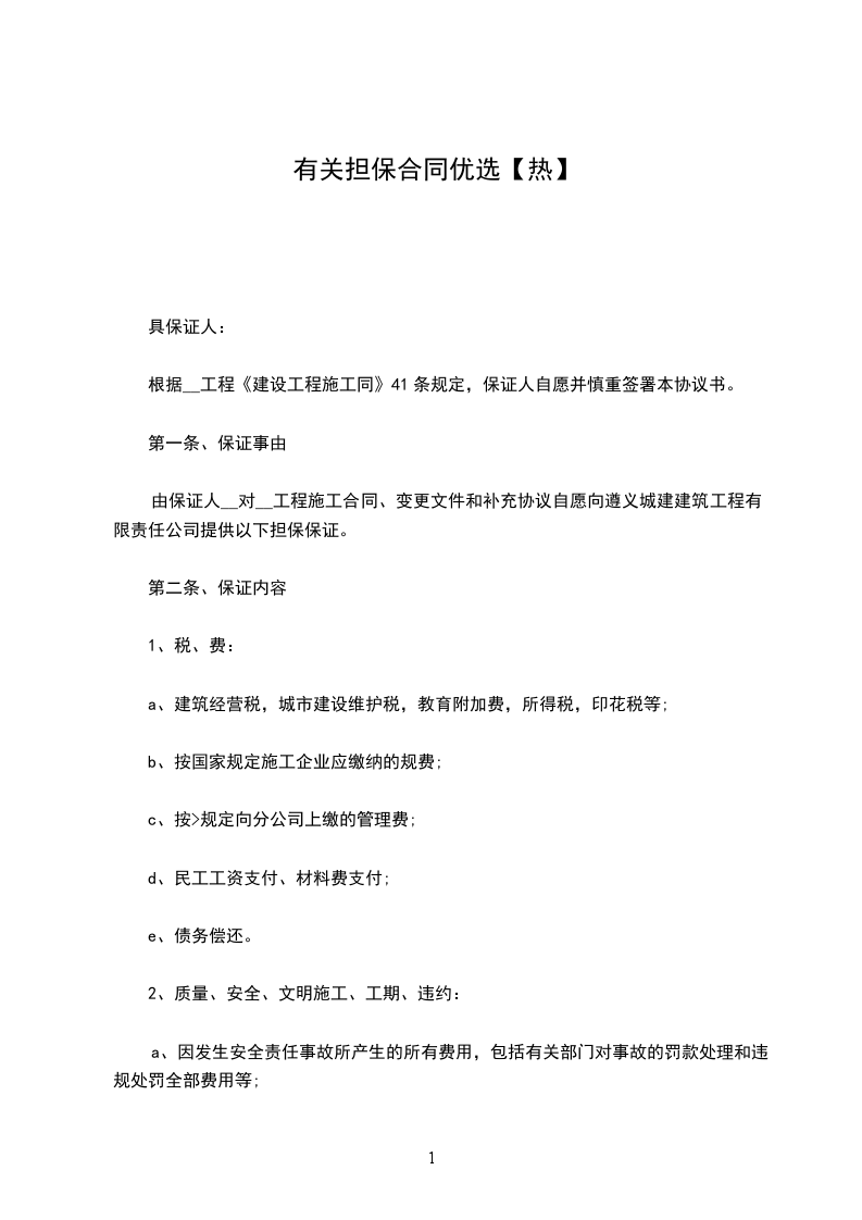 由保证人__对__工程施工合同、变更文件和补充协议自愿向遵义城建建筑工程有限责任公司提供以下担保保证。
