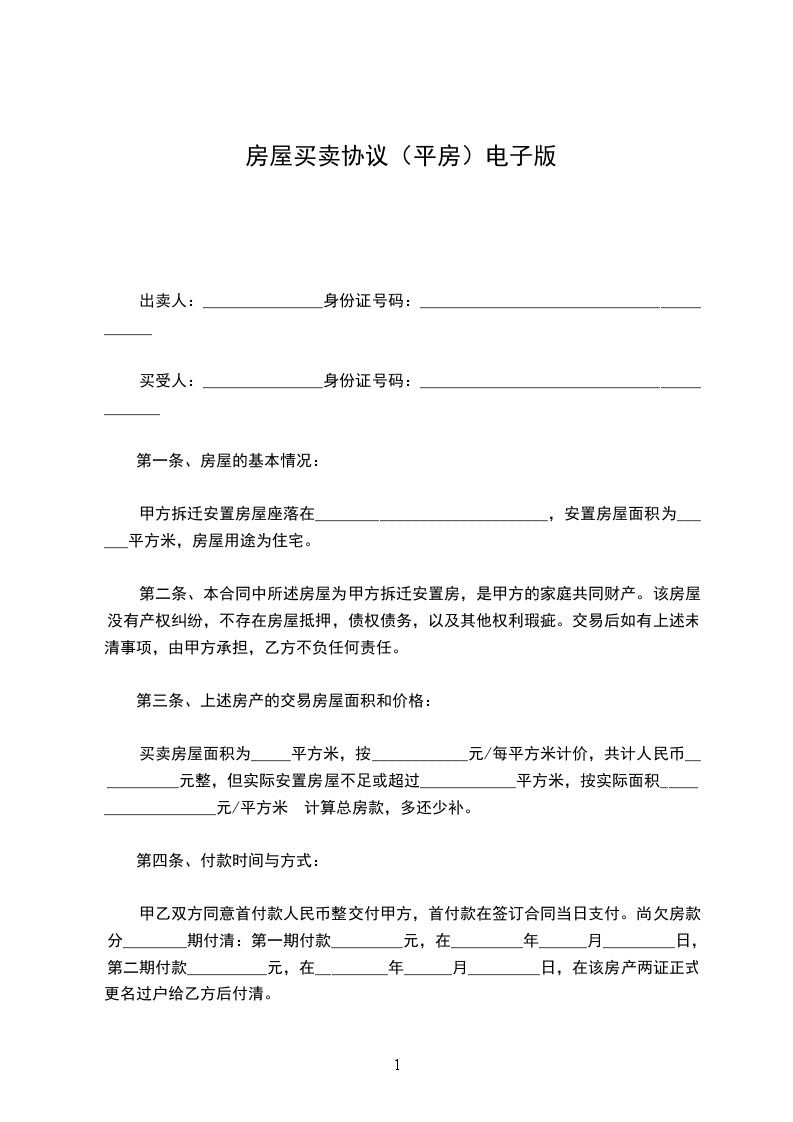 买方:_________(以下简称甲方)卖方:_________(以下简称乙方)双方同意买卖下列房屋:_________区_________路_________弄_________号_________室,建筑面积共_________平方米。经双方设立条件如下:第一条上述房屋由乙方售给甲方,全部价款共计人民币:_______