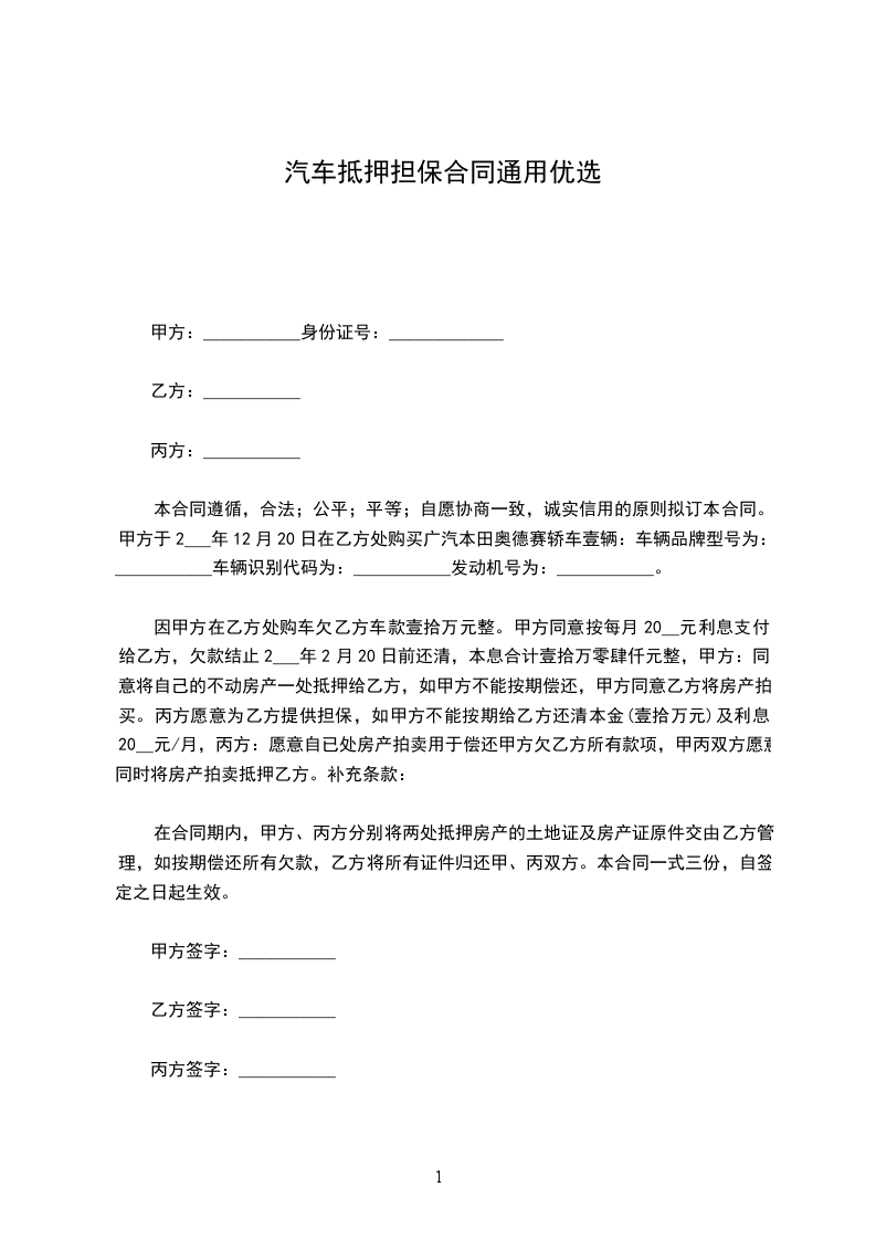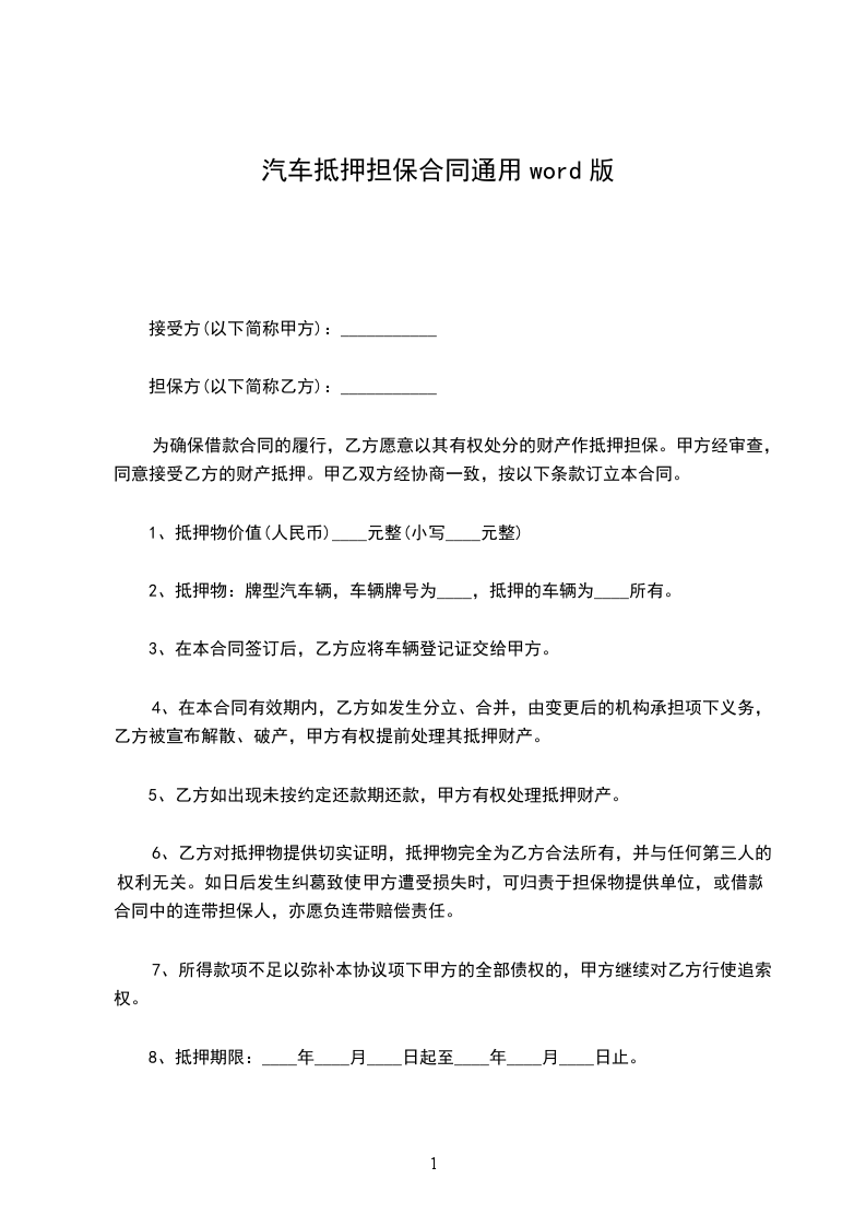 二、抵押物:_________牌_________型汽车_________辆,车辆牌号为:_________,发动机号为:_________,车架号为:_________。上述用于抵押的车辆为__________________所有。
