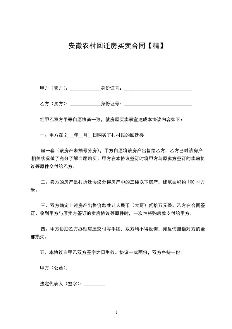 九、本协议签订后,双方应该共同遵守。如违约,违约方除赔偿对方相应经济损失外,还应该赔偿对方房屋总价款20%的违约金。