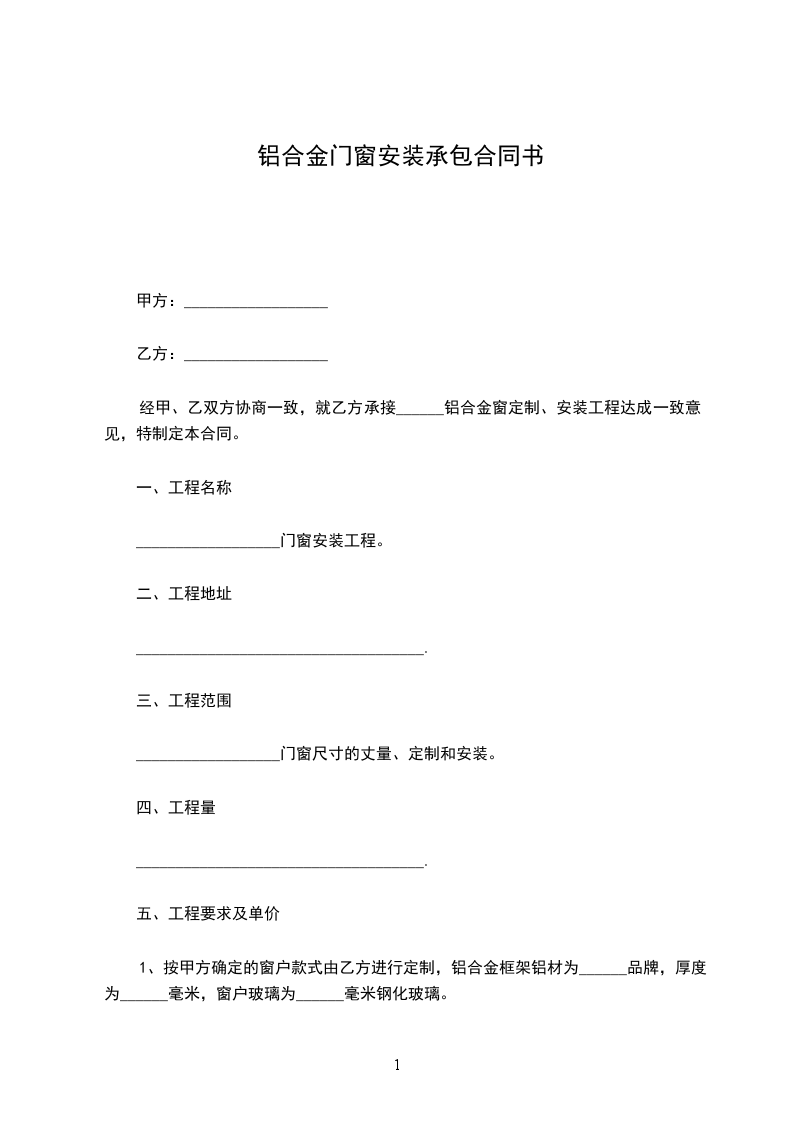 (一)本合同塑钢门窗承包范围为,合同综合单价为人民币______元/m2,门窗面积约,合同总额暂定为人民币________元,大写:________。