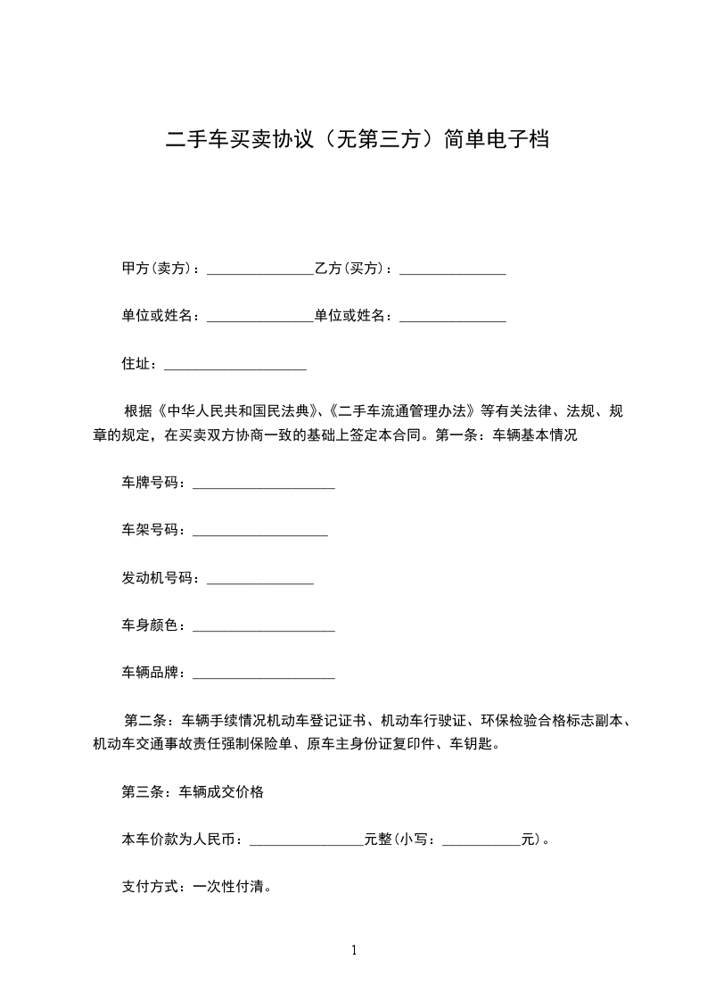 根据《中华人民共和国民法典》、《二手车流通管理办法》等有关法律、法规、规章的规定,在买卖双方协商一致的基础上签定本合同。第一条:车辆基本情况