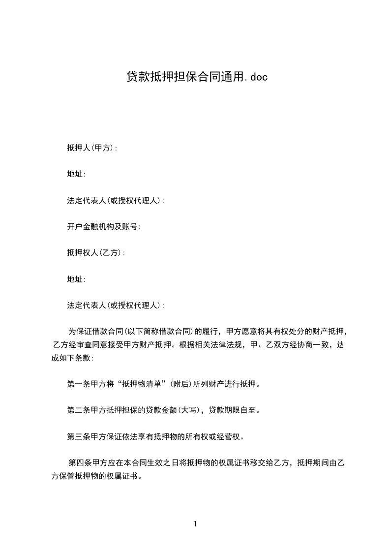 第二条甲方抵押担保的贷款金额(大写),贷款期限自至。