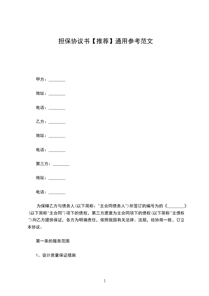 为保障乙方与债务人(以下简称:"主合同债务人")所签订的编号为的《________》(以下简称"主合同")项下的债权,第三方愿意为主合同项下的债权(以下简称"主债权")向乙方提供保证,各方为明确责任,依照我国有关法律、法规,经协商一致,订立本协议。