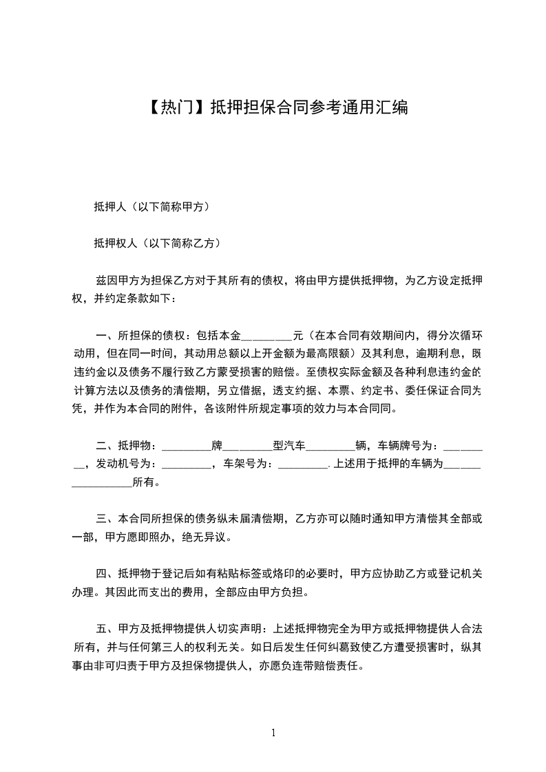 第一条为了确保甲、乙双方于_年__月_日已达成的《合同》(以下简称为主合同)的履行,甲方愿意以其有权处分并拥有使用权的位于__市___镇,面积为_____亩的国有土地使用权(以下简称为抵押物)的全部权利抵押给乙方,作为履行该主合同的担保。该抵押物名称、数量和价值等情况详见本合同的附件一。