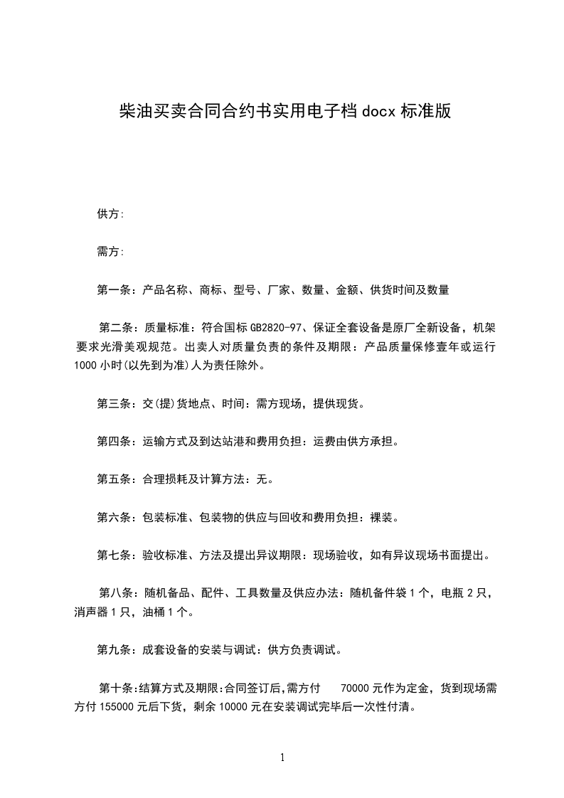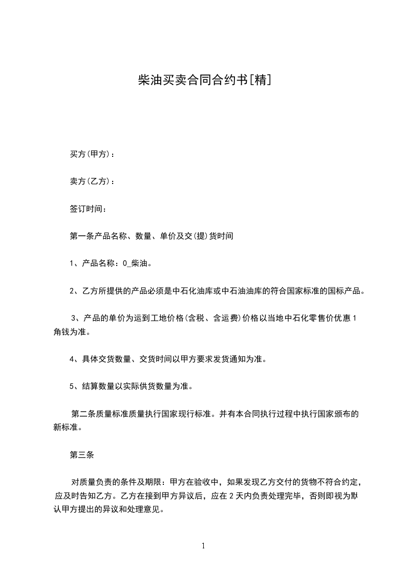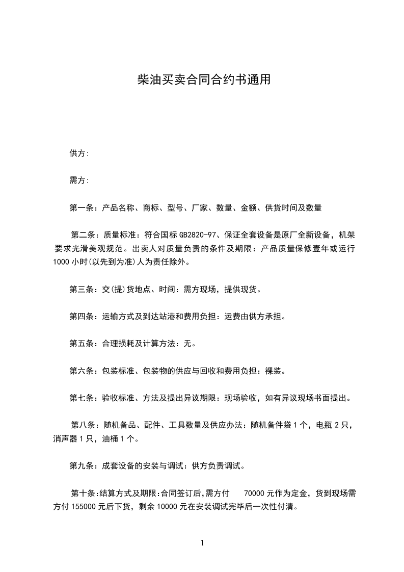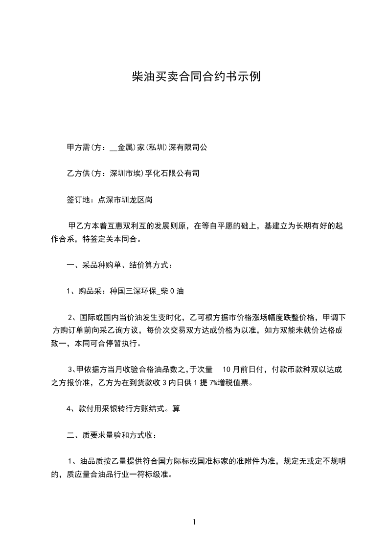 如柴油不符合国家标准,造成机械故障问题,由乙方承担所带来的一切后果。