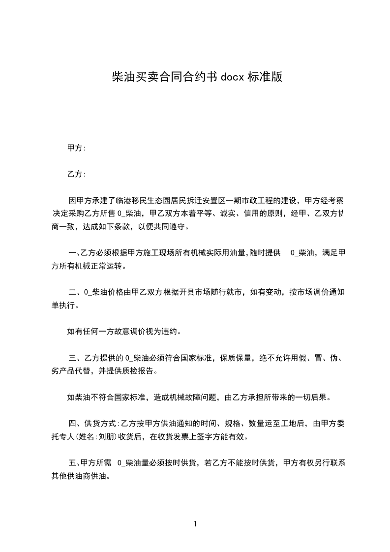 因甲方承建了临港移民生态园居民拆迁安置区一期市政工程的建设,甲方经考察决定采购乙方所售0_柴油,甲乙双方本着平等、诚实、信用的原则,经甲、乙双方协商一致,达成如下条款,以便共同遵守。