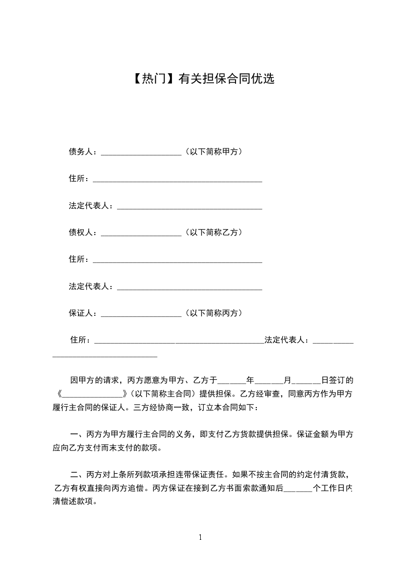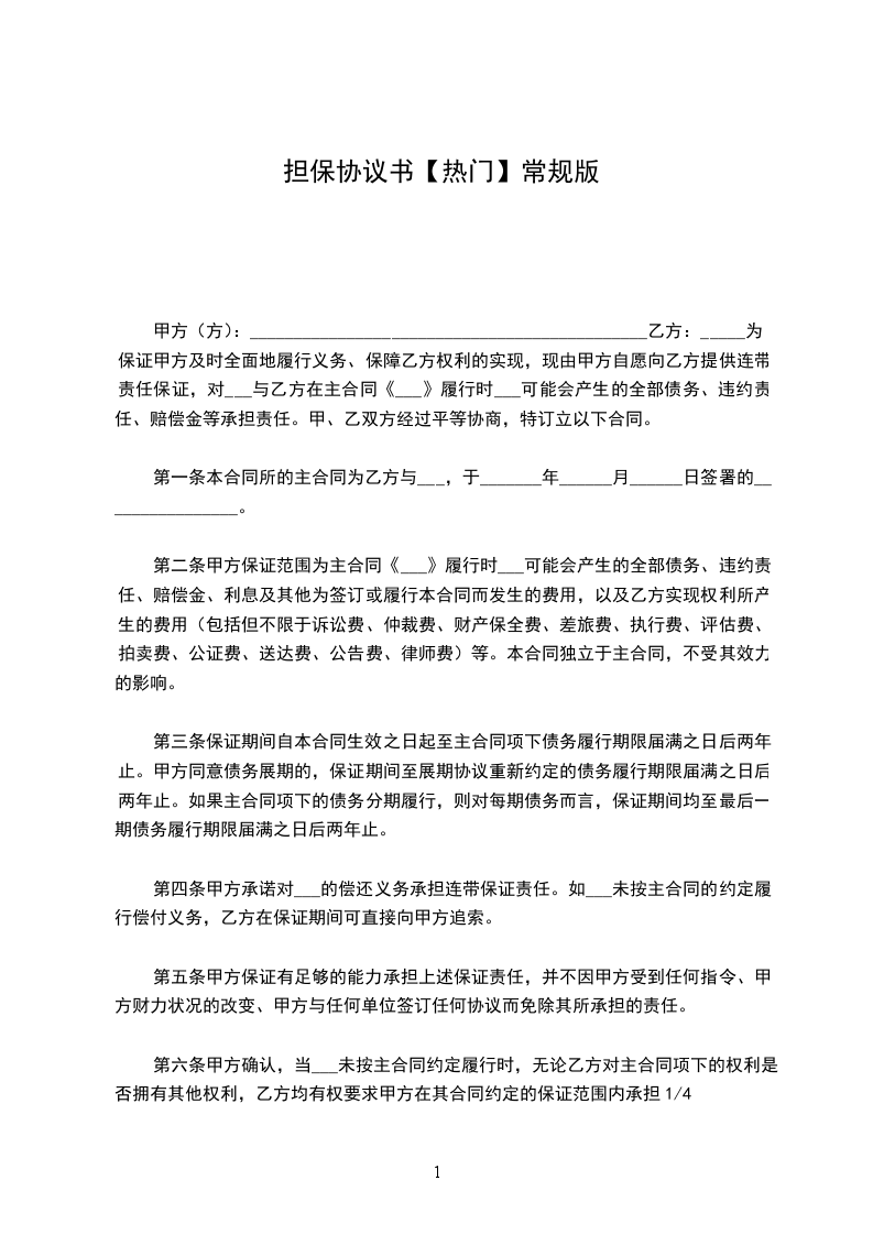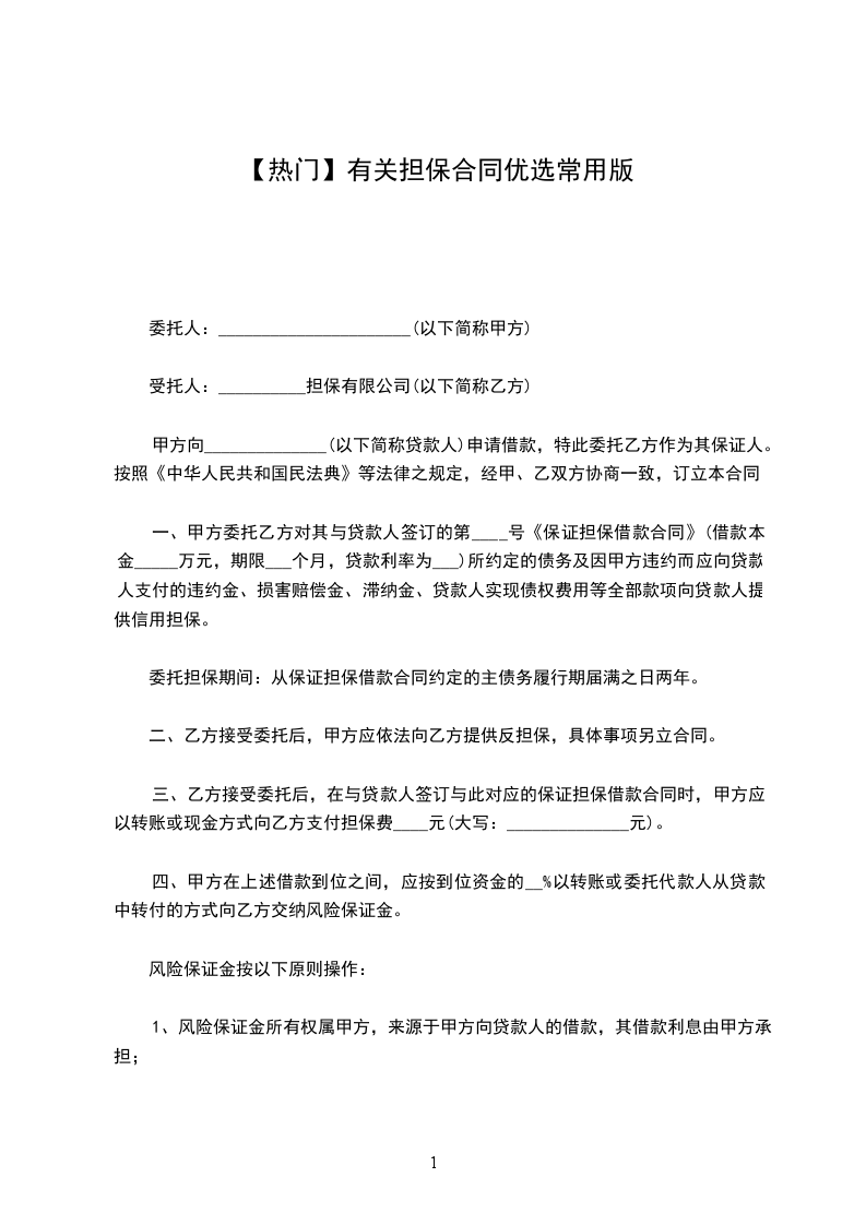 一、甲方委托乙方对其与贷款人签订的第____号《保证担保借款合同》(借款本金_____万元,期限___个月,贷款利率为___)所约定的债务及因甲方违约而应向贷款人支付的违约金、损害赔偿金、滞纳金、贷款人实现债权费用等全部款项向贷款人提供信用担保。