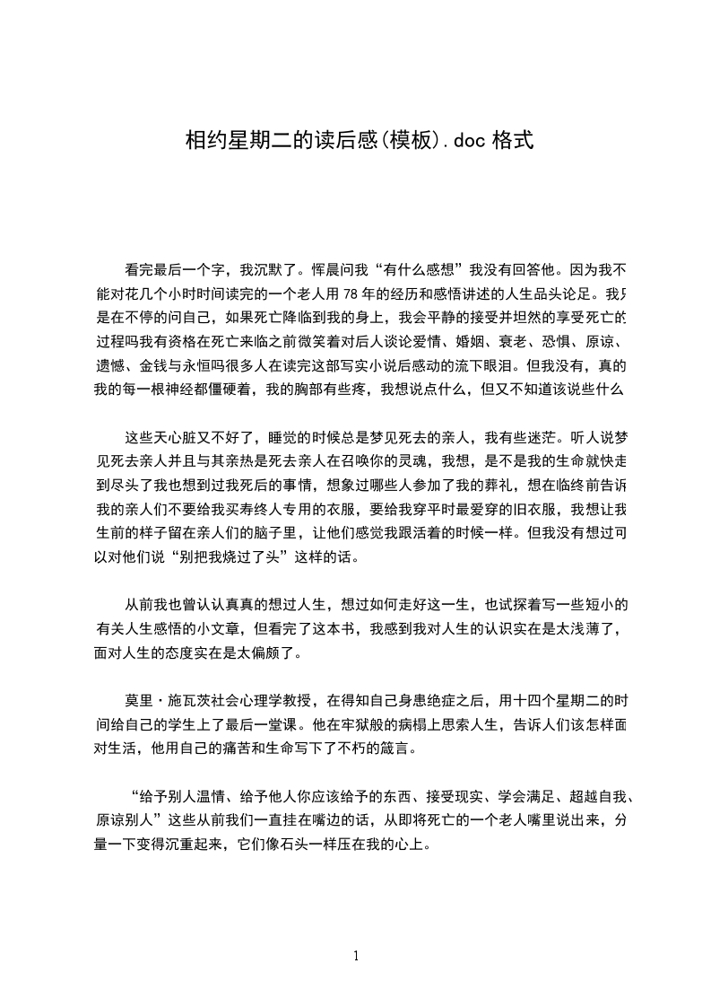 我想我要学着象莫里老人一样建立自己的文化,学着去爱,学着去给予,学着去交流,学着去关心,建立自己爱的文化,坚持自己的梦想,获得生活的真正意义。
