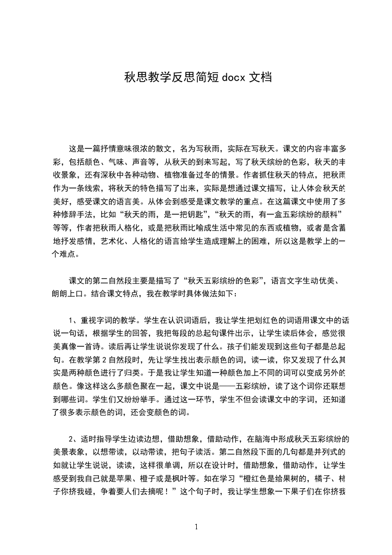 下课了,还有许多孩子围着我讲秋天……突然,念小婷很认真地问我:"教师,秋天为什么不和我们玩儿一下再走呢"她大概还在想课上的那个"秋天为何匆匆而来,匆匆而去"的问题吧!我笑了一下说:"她已经和你玩过了。只可是你没注意……比如它'呼'地一下摸了你的脸,'唰'地一下又碰了你的耳朵。"小婷开心地笑了。