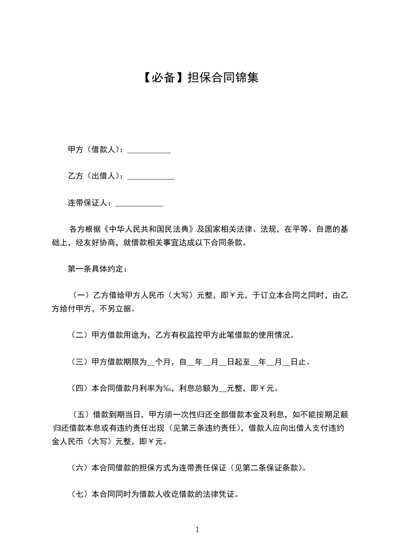 (一)甲方完全接受乙方为其出具的担保书;
