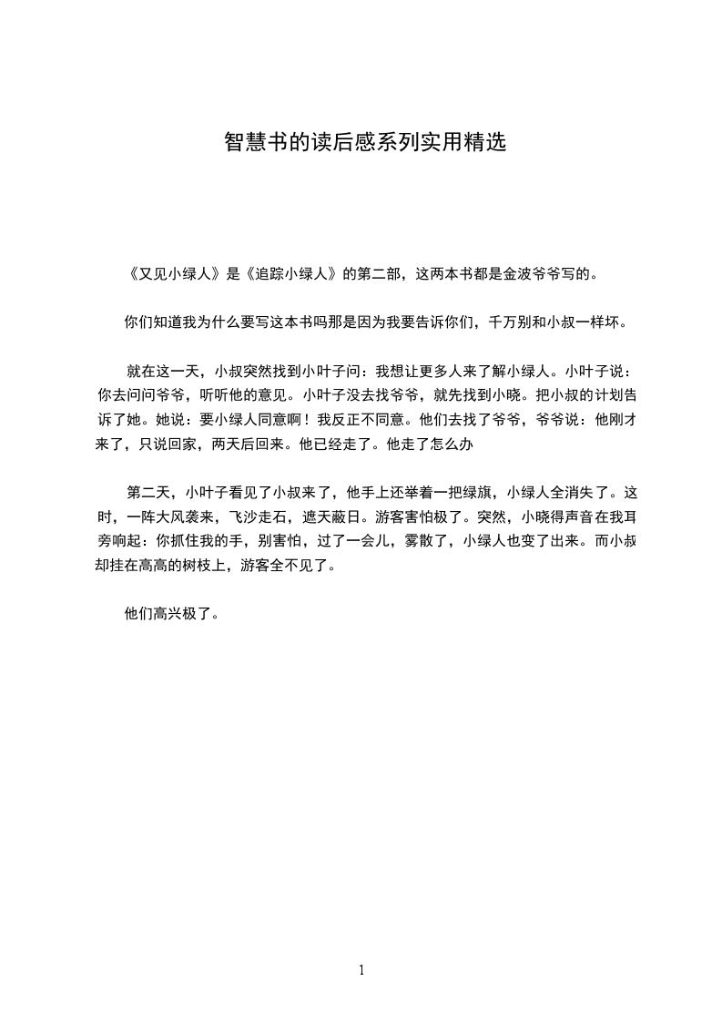 就在这一天,小叔突然找到小叶子问:我想让更多人来了解小绿人。小叶子说:你去问问爷爷,听听他的意见。小叶子没去找爷爷,就先找到小晓。把小叔的计划告诉了她。她说:要小绿人同意啊!我反正不同意。他们去找了爷爷,爷爷说:他刚才来了,只说回家,两天后回来。他已经走了。他走了怎么办