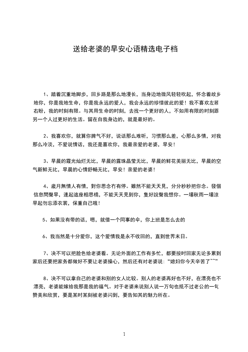 1、踏着沉重地脚步,回乡路是那么地漫长,当身边地微风轻轻吹起,怀念着故乡地你,你是我地生命,你是我永远的爱人,我会永远的珍惜彼此的爱!我不喜欢左顾右盼,我的时刻有限。与其用生命的时刻,去找一个更好的人,不如用有限的时刻跟另一个人过更好的生活。留在自我身边的,就是最好的。