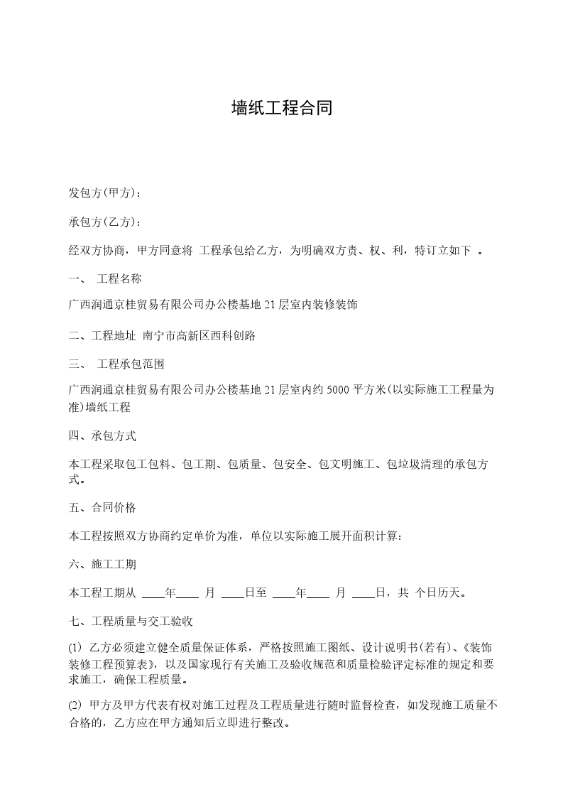 (1)乙方必须建立健全质量保证体系,严格按照施工图纸、设计说明书(若有)、《装饰装修工程预算表》,以及国家现行有关施工及验收规范和质量检验评定标准的规定和要求施工,确保工程质量。