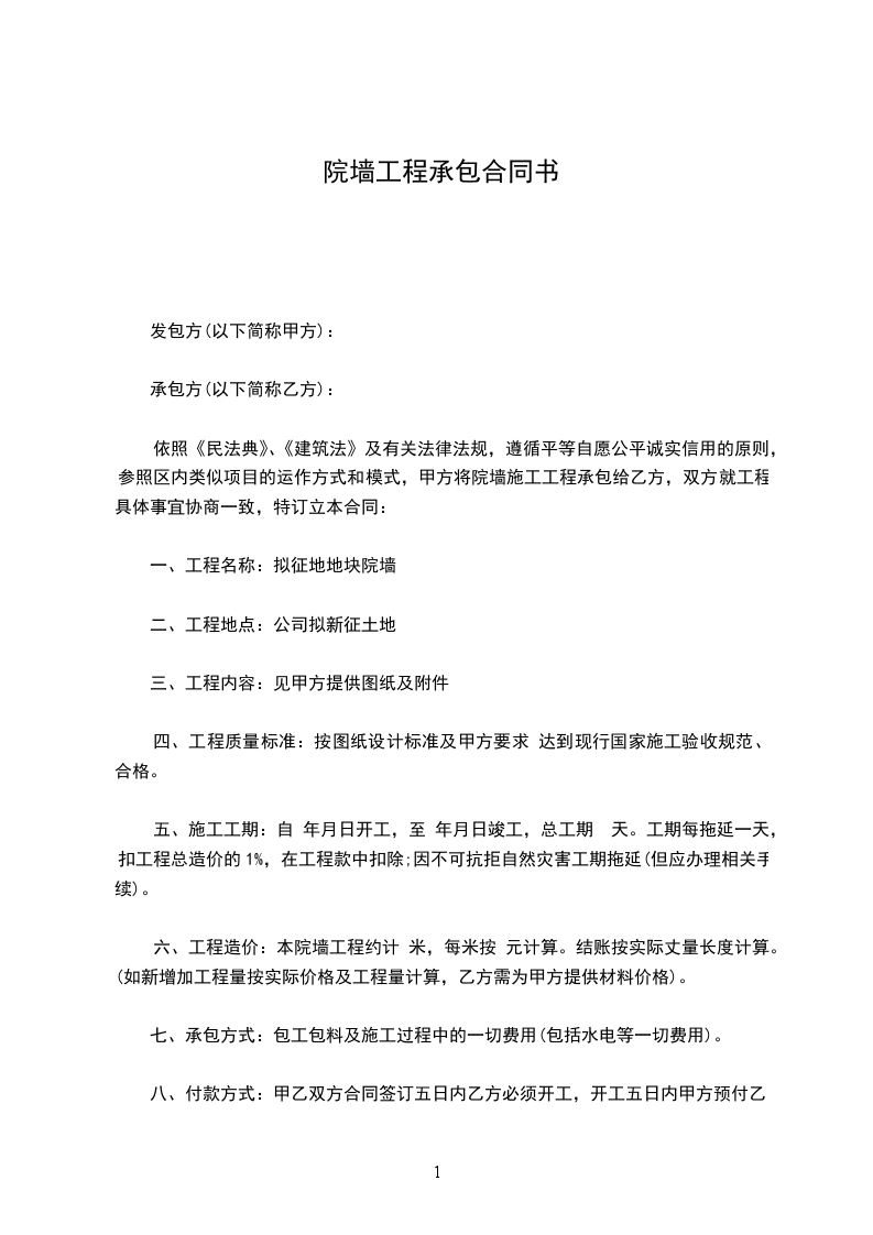 经双方协商,甲方同意将________工程承包给乙方,为明确双方责、权、利,特订立如下合同书。