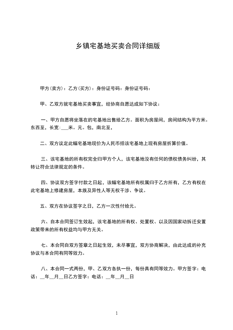 一、甲方自愿将坐落在的宅基地出售给乙方。面积为房屋间,房间结构为平方米。东西至,长宽:___米。元。包,南北至,