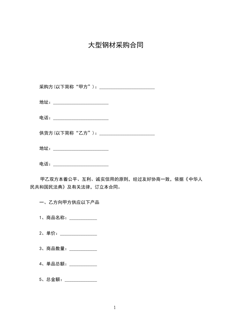 一、乙方向甲方供应以下产品