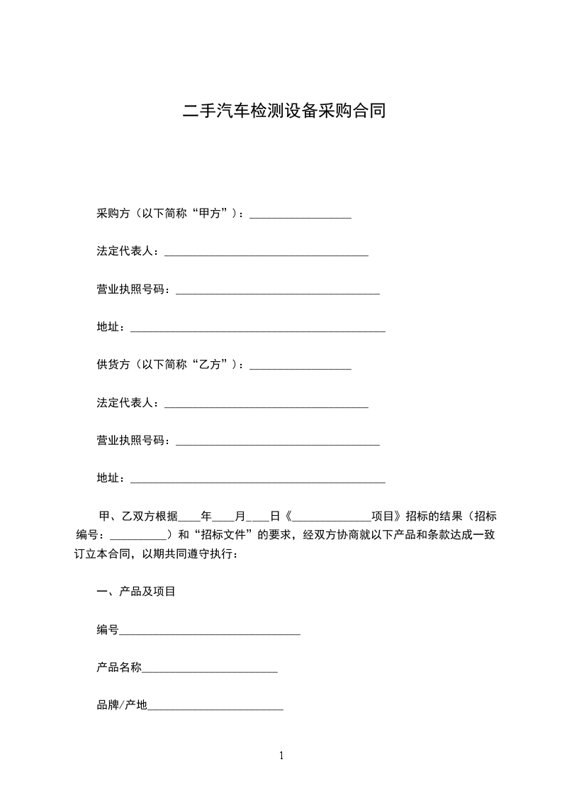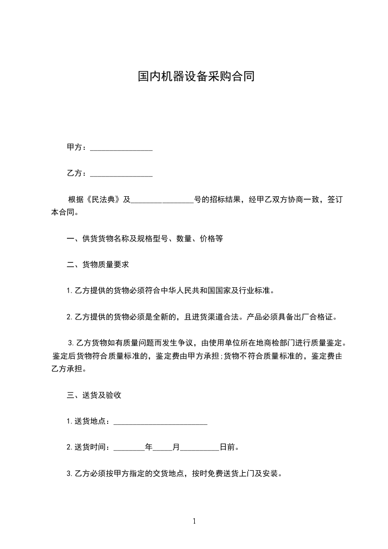 一、甲方从乙方购买如下设备品名规格质保数量单价总价