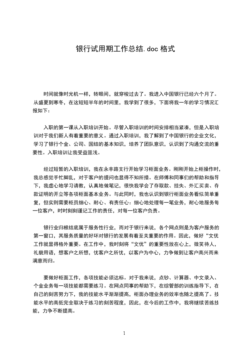 2___年_月,我满怀着对金融事业的向往与追求走进了__建行。时光飞逝,来__建行已经半个年头了,即将过完我的试用期,无论是工作上,学习上,还是思想上都逐渐成熟起来。