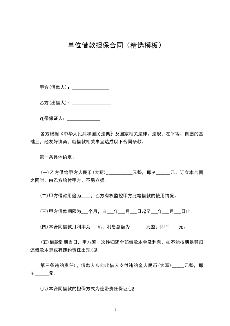 根据(下称借款人)与乙方签订的编号为_____________________年[个人借款]字第号的《借款合同》的约定,乙方向借款人提供借款资金为(大写人民币)万元,期限为_____个月。现甲方自愿以借款人的担保人身份向乙方提供担保,并明确以乙方为唯一受益人的、无条件的、不可撤销连带保证责任担保。