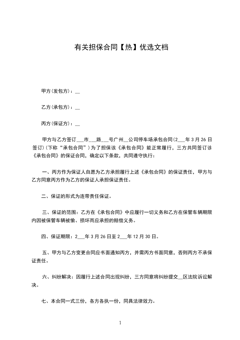 _________集团_________电信公司(以下简称乙方)与担保人_________,就被担保人_________(以下简称甲方)使用乙方个人住宅电话(业务登记单受理编号:_________)提供担保签订如下合同: