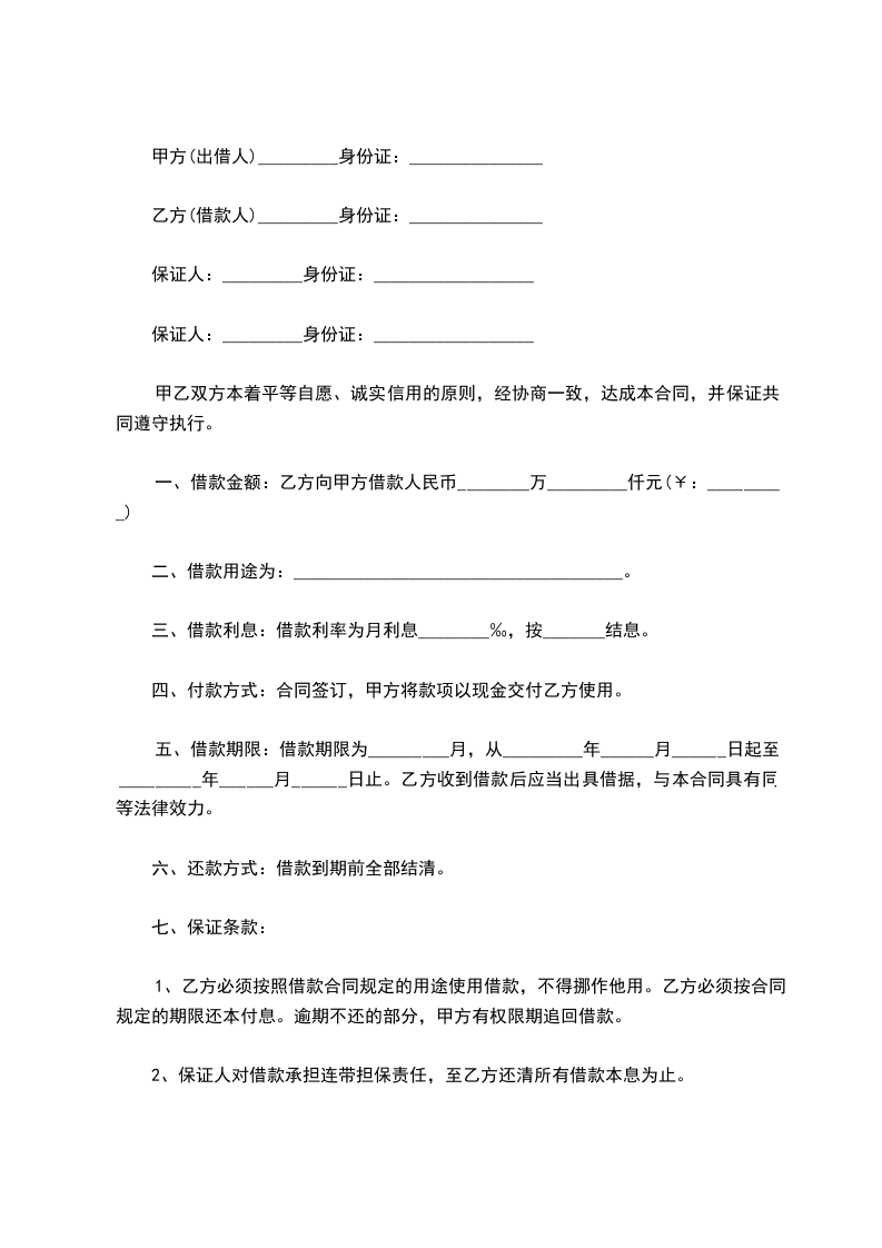 一、借款金额:乙方向甲方借款人民币________万_________仟元(¥:_________)