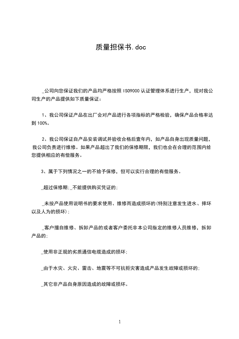 八、本质量担保书作为商品住宅销售合同的附件,是本公司承担商品住宅质量责任的法律文件,与销售合向具有同等法律效力,请用户妥善保存,不得伪造、涂改。