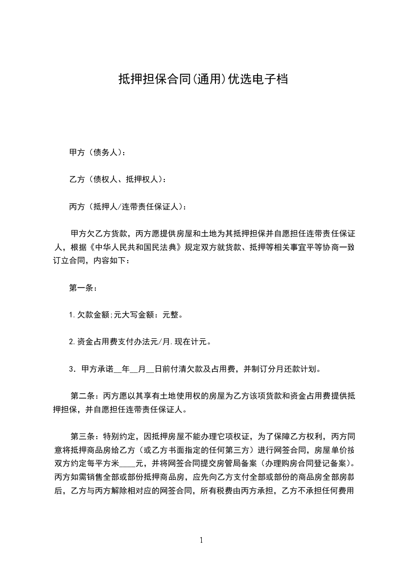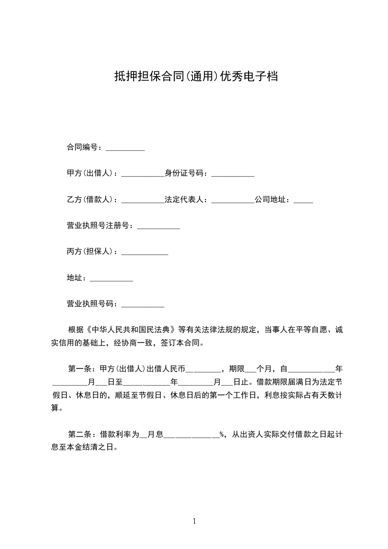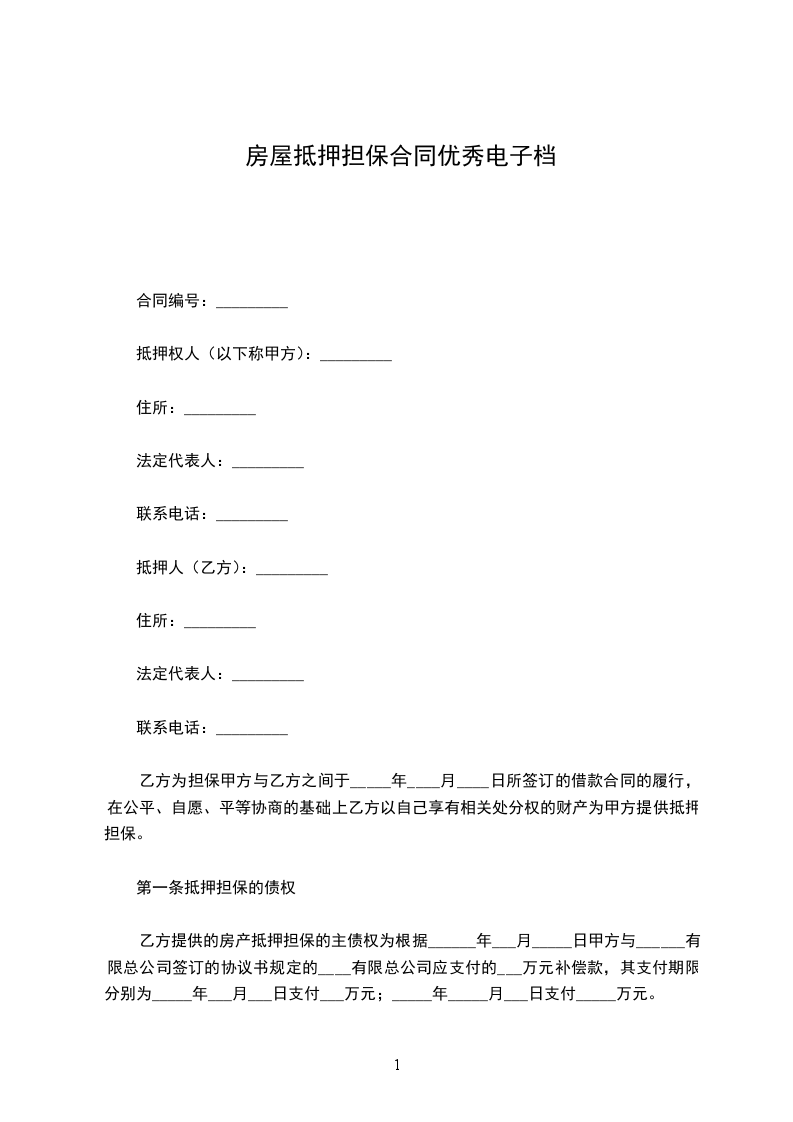 第一条乙方愿意以其有权处分的位于____市____区____路____号____房间之房产的全部权益抵押给甲方,以作为偿还借款合同项下之借款的担保。