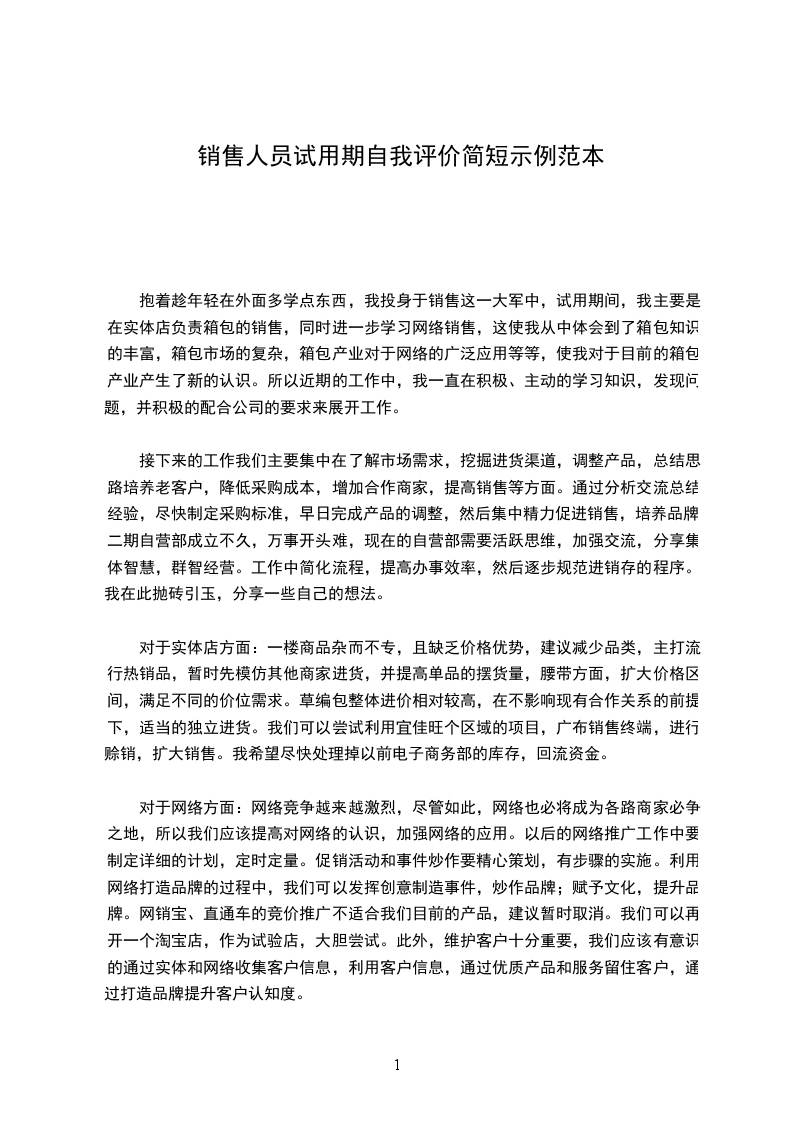 抱着趁年轻在外面多学点东西,我投身于销售这一大军中,试用期间,我主要是在实体店负责箱包的销售,同时进一步学习网络销售,这使我从中体会到了箱包知识的丰富,箱包市场的复杂,箱包产业对于网络的广泛应用等等,使我对于目前的箱包产业产生了新的认识。所以近期的工作中,我一直在积极、主动的学习知识,发现问题,并积极的配合公司的要求来展开工作。