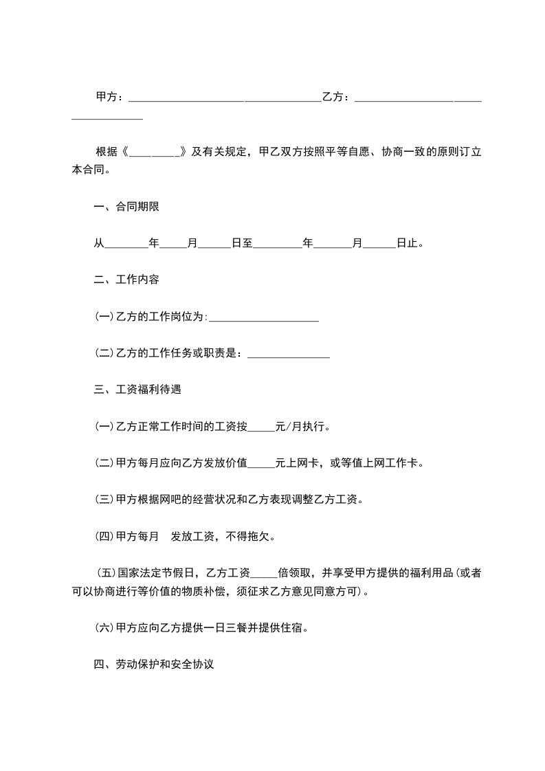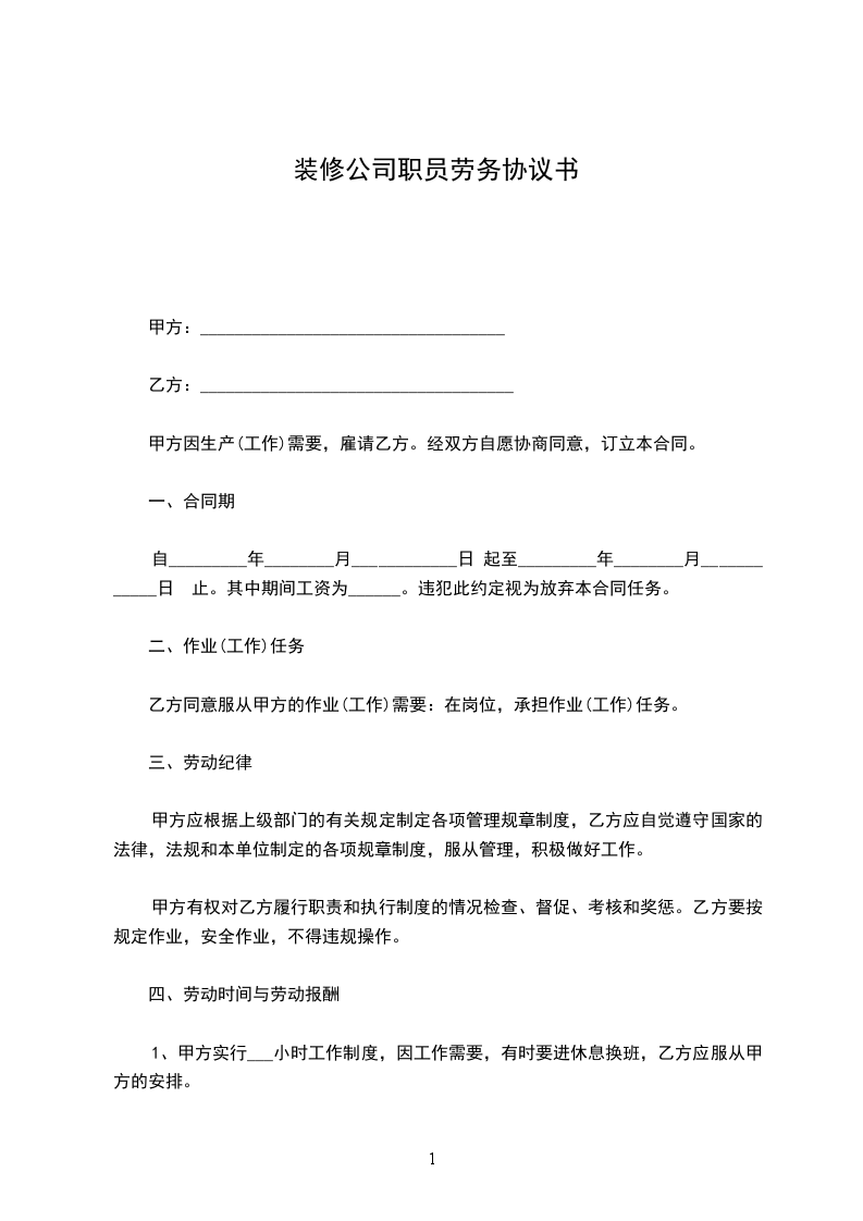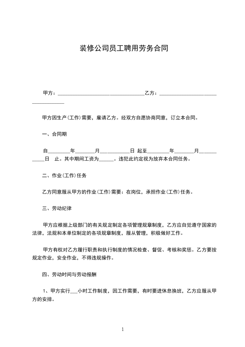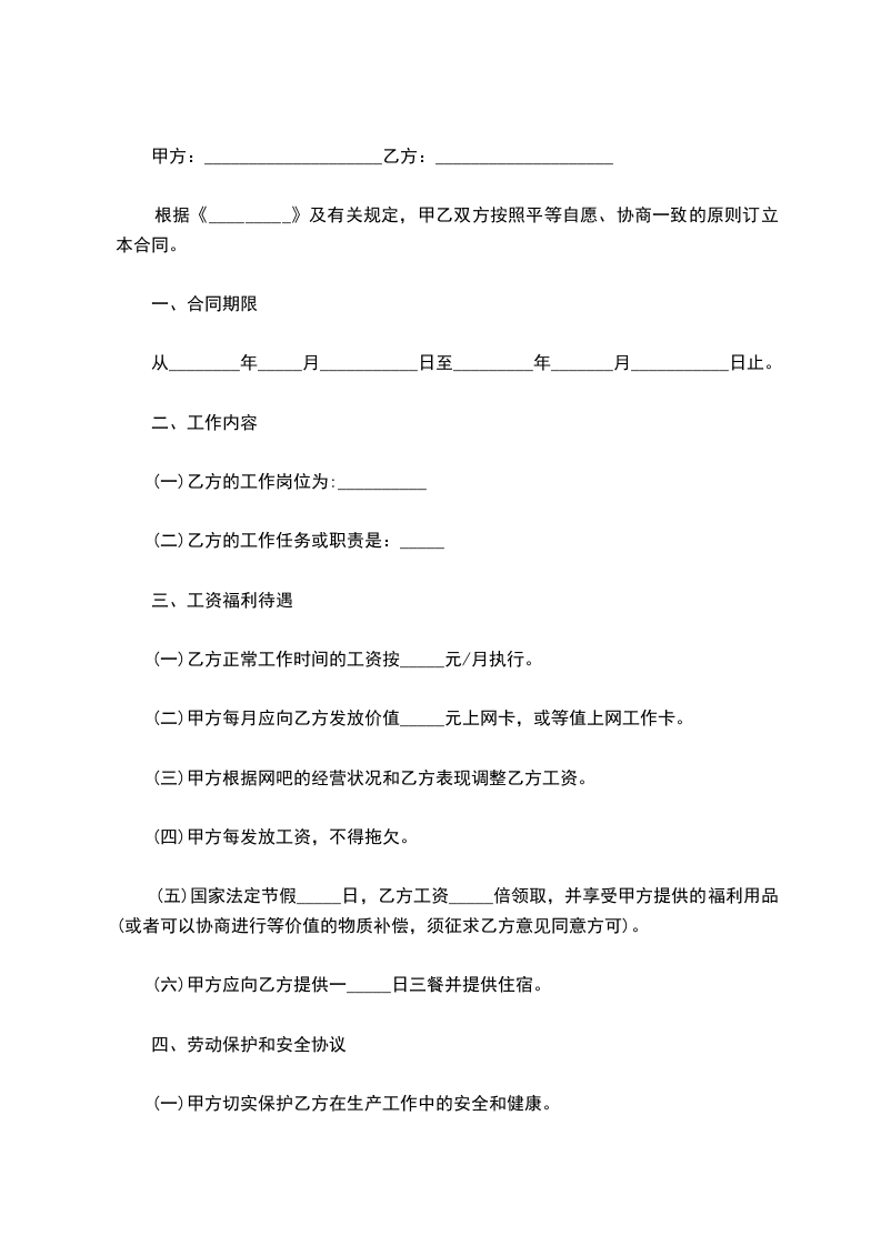 1、甲方实行___小时工作制度,因工作需要,有时要进休息换班,乙方应服从甲方的安排。