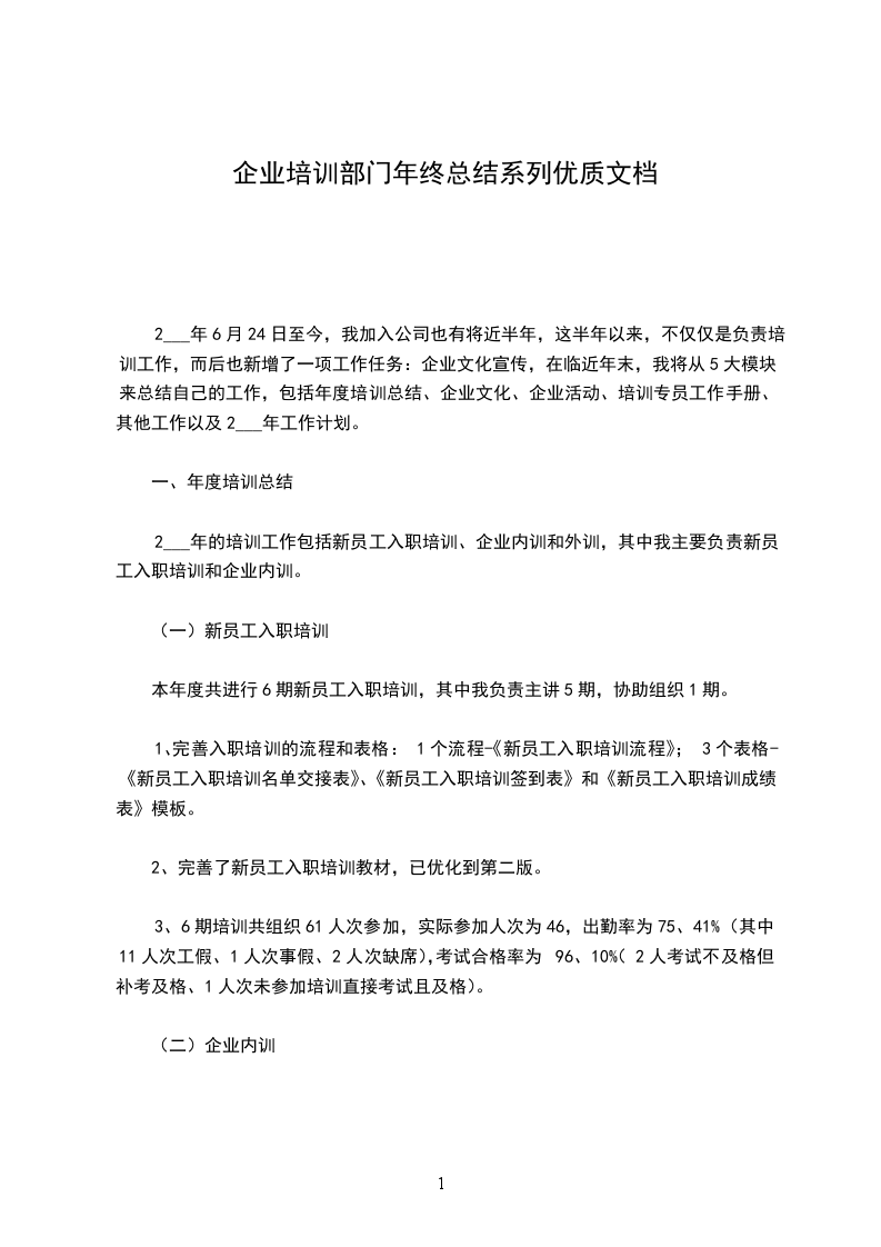 2___年6月24日至今,我加入公司也有将近半年,这半年以来,不仅仅是负责培训工作,而后也新增了一项工作任务:企业文化宣传,在临近年末,我将从5大模块来总结自己的工作,包括年度培训总结、企业文化、企业活动、培训专员工作手册、其他工作以及2___年工作计划。