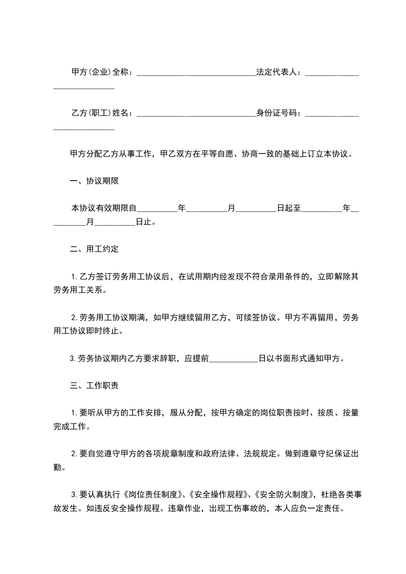 2.劳务用工协议期满,如甲方继续留用乙方,可续签协议。甲方不再留用,劳务用工协议即时终止。