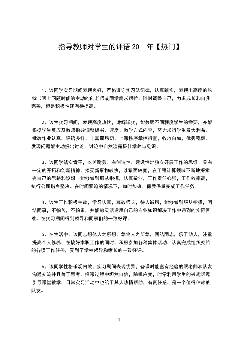 11.你是一个聪明懂事的好学生,你有值得很多人学习的刻苦学习的精神,对工作认真负责,生活上艰苦朴素让为师的特欣慰,学习光是勤奋还不够,还需多一些“活法”“活招”,望以后能以自己的长处去弥补自己的不足之处!相信在明年的中考中你一定会考上理想的重点高中。