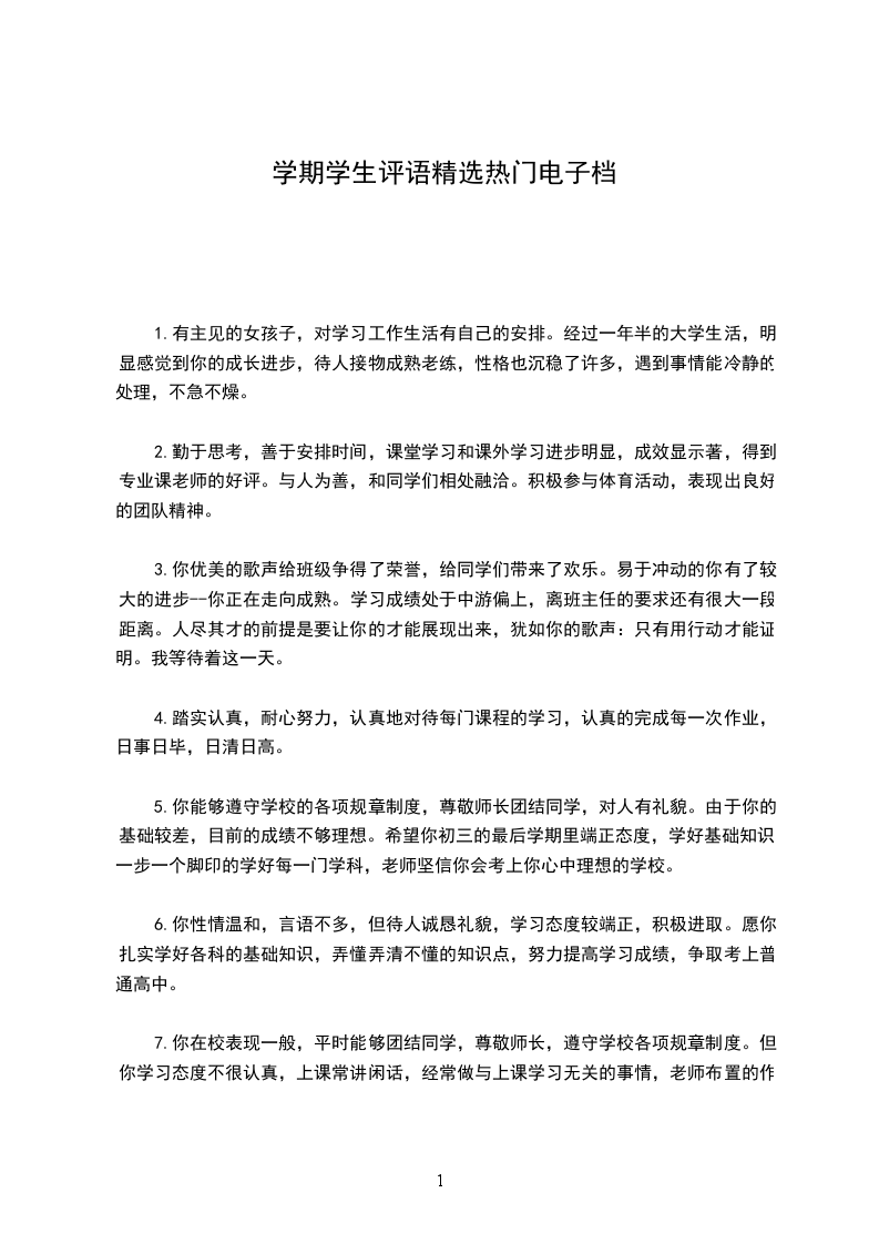 1.有主见的女孩子,对学习工作生活有自己的安排。经过一年半的大学生活,明显感觉到你的成长进步,待人接物成熟老练,性格也沉稳了许多,遇到事情能冷静的处理,不急不燥。