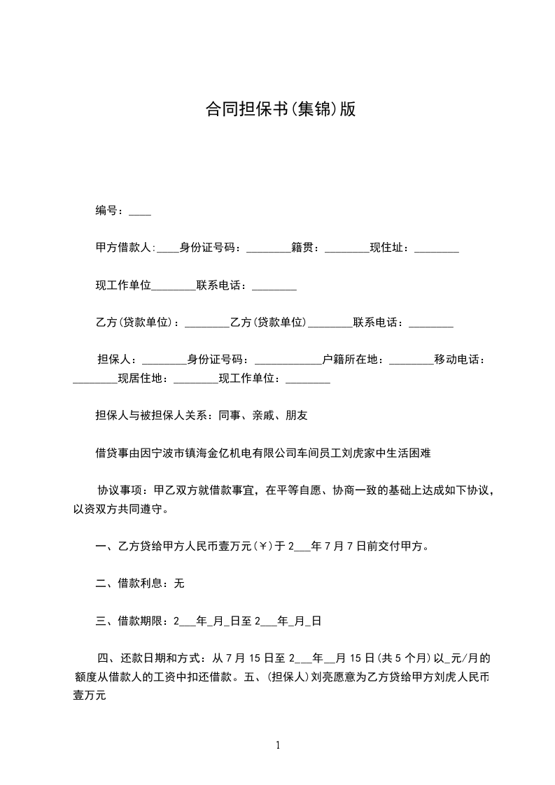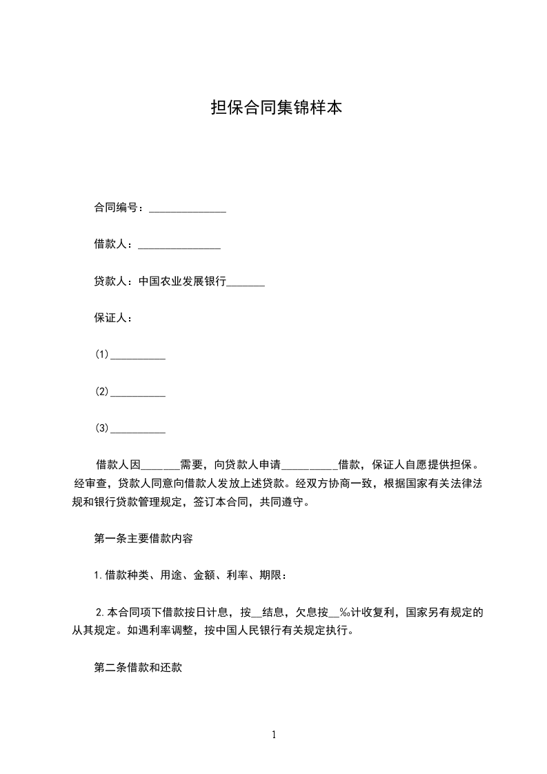 1、乙方向贷款行借款本金元,借款期限个月。甲方愿就上述借款,为乙方向贷款行提供担保,具体担保范围以甲方与贷款行签订的《保证合同》为准。